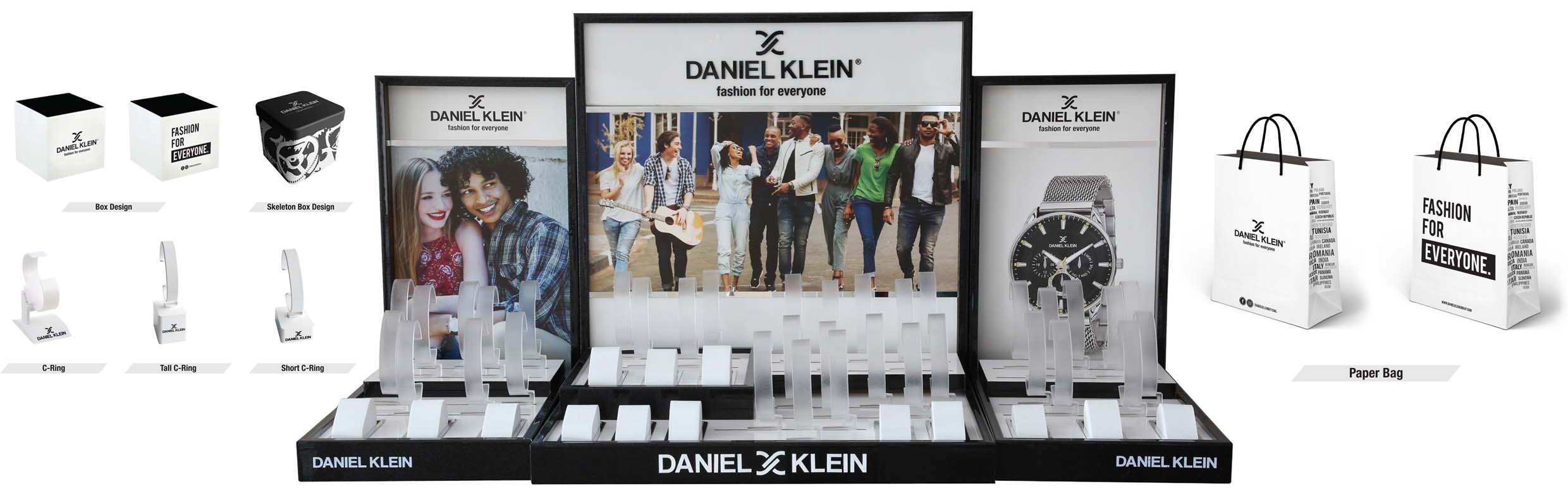 Montres de la marque Daniel Klein water resist.Montres équipées d'un mouvement japonais Miyota(Citizen).Le plaquage ne se détériore pas.Les montres Daniel Klein fabriquées avec un verre trempé résistent aux rayures.Garantie 2 ans.La collection de montres Daniel klein est composée de 2 gammes principales; La gamme premium, des montres d'une très grande qualité, et la gamme exclusive le haut de gamme de la marque Daniel Klein.La gamme exclusive comporte un grand choix de montres avec 3 compteurs calendrier multifonctions.Taille du présentoir L52Xh44Xp32.